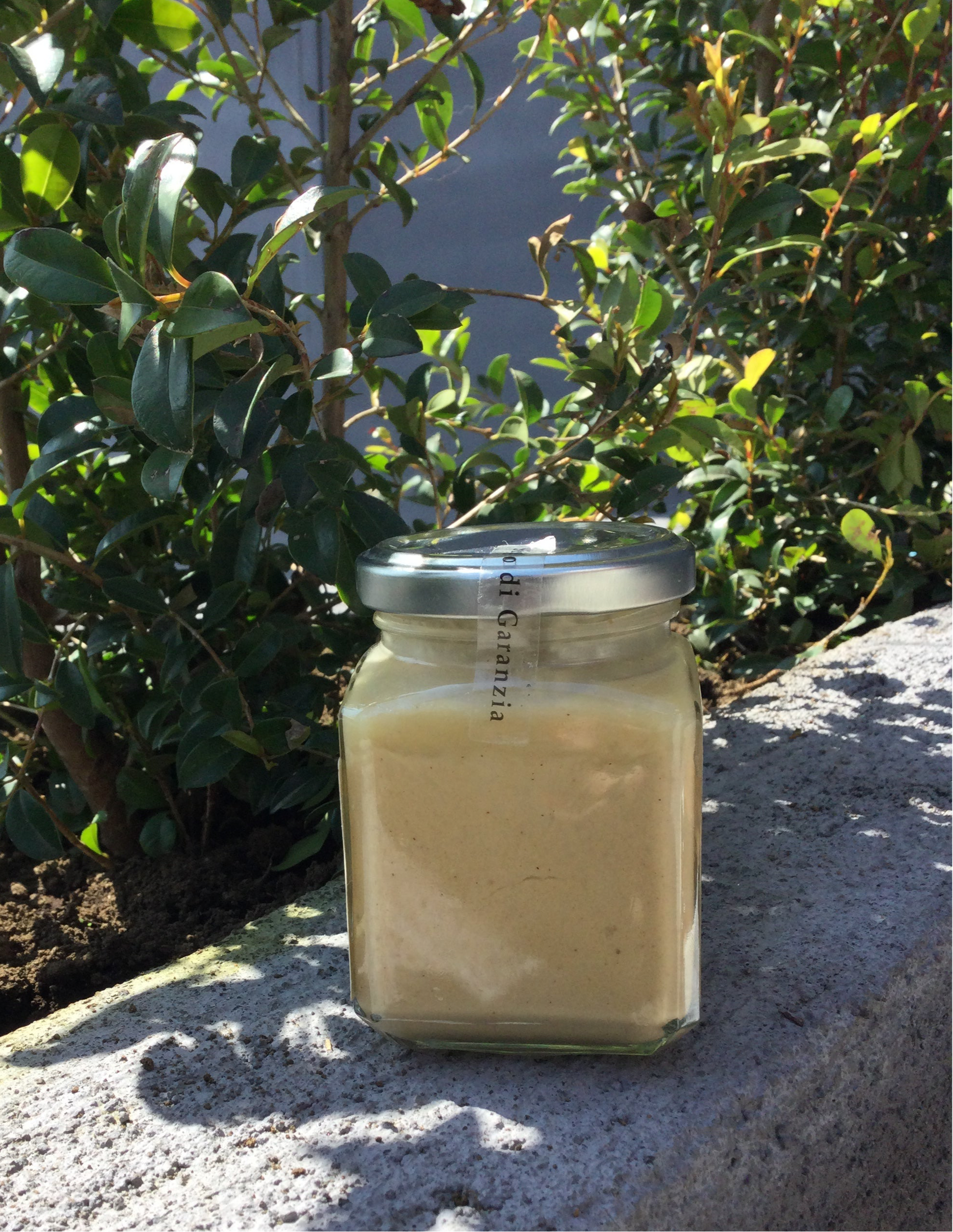 Golosa crema spalmabile di mandorle con miele di zagara. Sul pane,per farcire dolci e crostate,a colazione o a merenda.